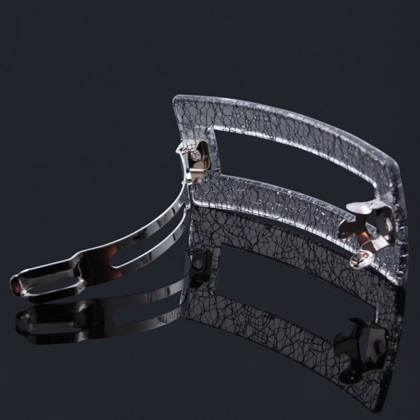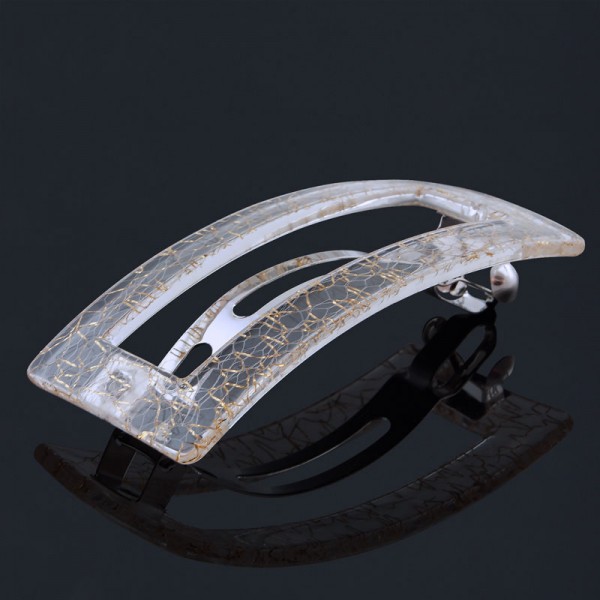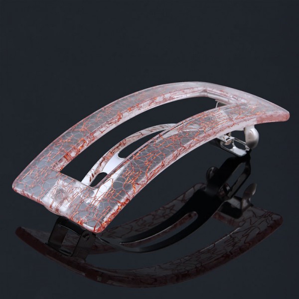 Trendigt rektangulärt hårspänne av genomskinlig akryl med färgade trådar inbakade i plasten. Ramen är handgjord och av hög kvalitet, bra finish och känns gediget. Hårspännet passar till det mesta, snyggt att ha till vardags.