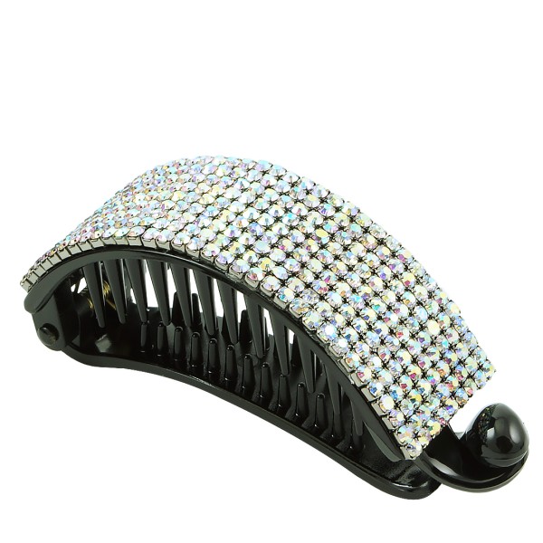 Bananklämma med strass till din hästsvans. Bland det vackraste man kan köpa - enkel men mycket elegant design. Håller håret på plats och är enkel att sätta på och ta av. Kvalitetsprodukt med fjädrande effekt när man öppnar klämman.
