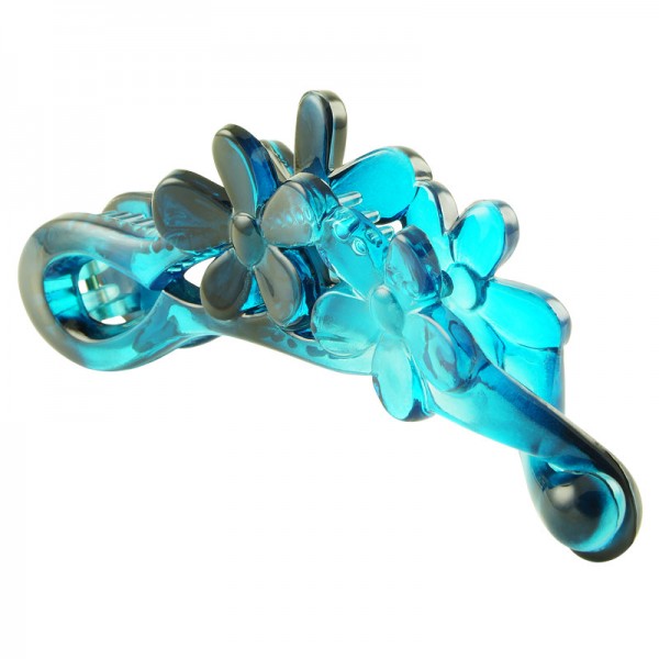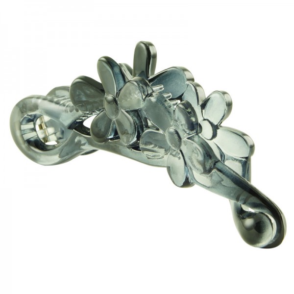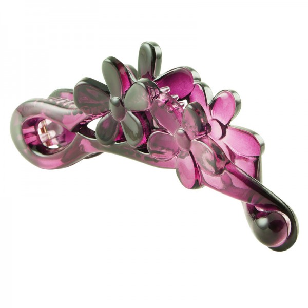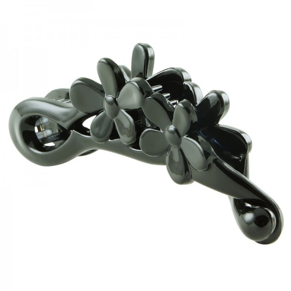 Smålyxig bananklämma av uthållig ABS-plast med två blomdekorationer på ovansidan. Robust kvalitet som klarar daglig användning.