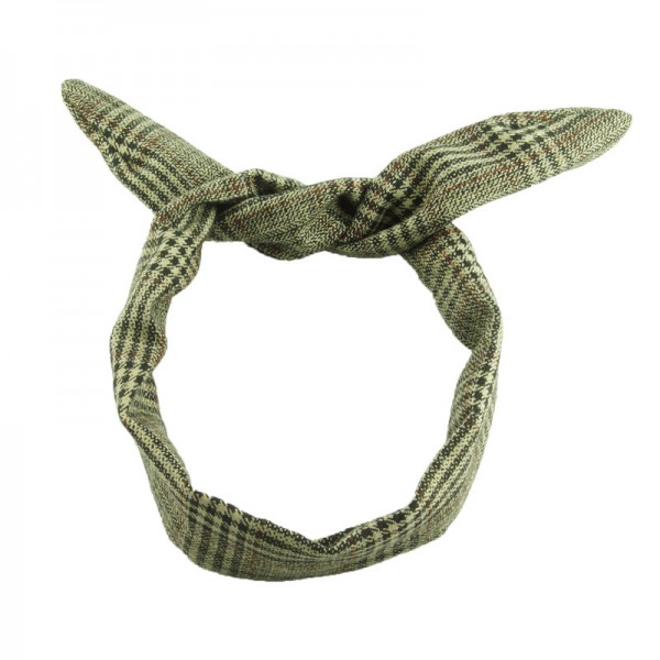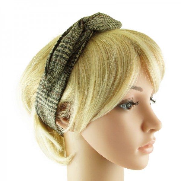 Mönstrat hårband med fiskbensväv- och hundtandsmönster. Ståltråd inuti, mäter 80 cm i längd och 4 cm i bredd.