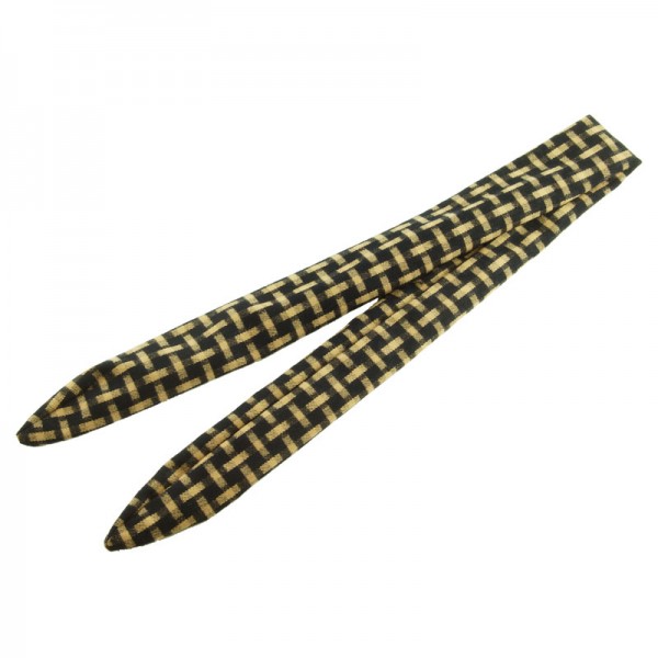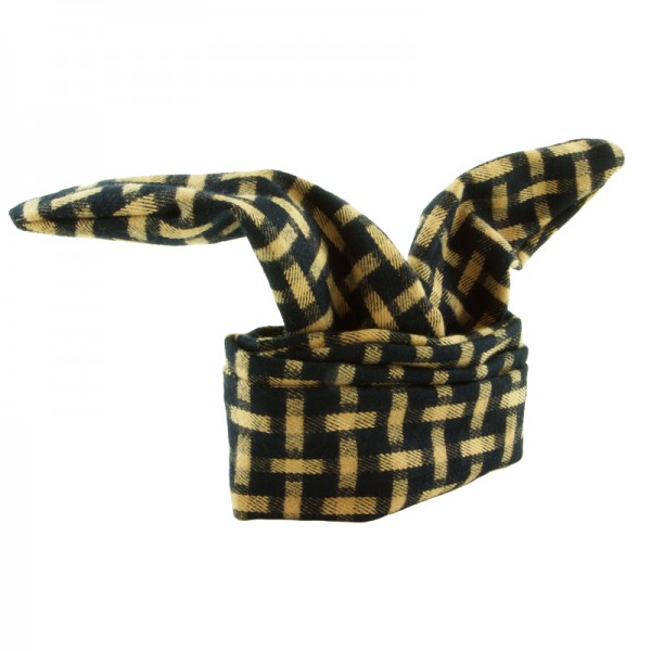 Mörkfärgad bandana i kraftigare polyester och bomull med khakifärgade rutor. Formbar med en tunn ståltråd inuti, välj själv om du vill ha kaninöron eller ej. Bra längd, mäter 80 cm från spets till spets och 4 cm i bredd.