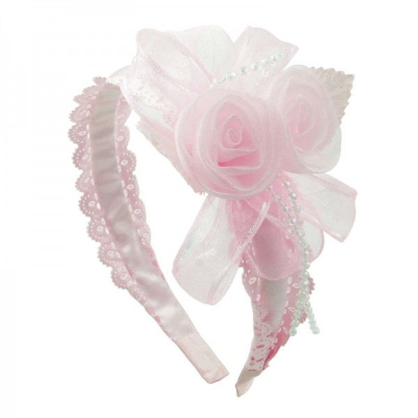 Handgjord och tygbeklädd plastram med spets runtom. Dekorerad med matchande pärlor på ramen, och rosor och artificiella pärlband på sidan. Gediget hantverk, ej att förväxlas med billiga Kina kopior.