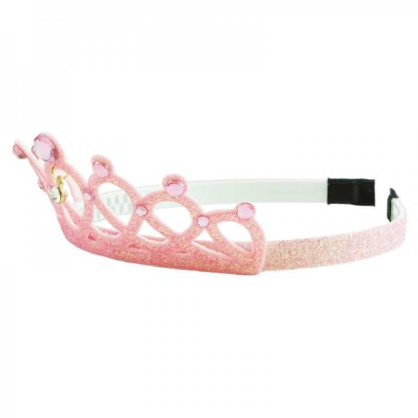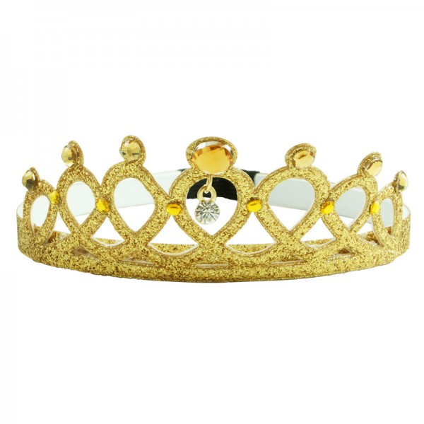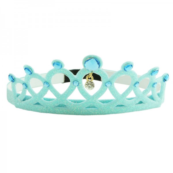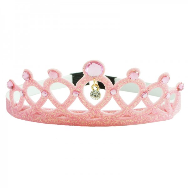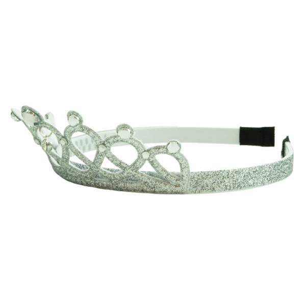 Mjuk prinsesskrona för prinsessan där hemma. Själva krondelen mäter 12,5 cm i längd och 5 cm i höjd och är dekorerad med vita kristaller och glitter runt om. Insidan av det vita plastdiademet har små piggar för att diademet ska sitta bättre på plats.