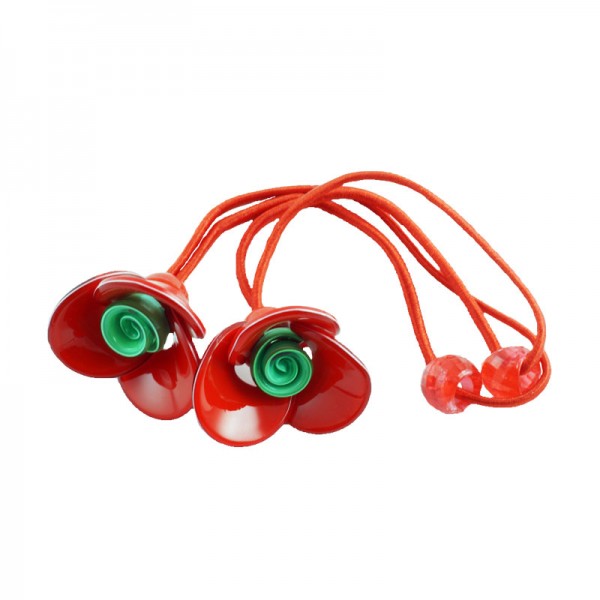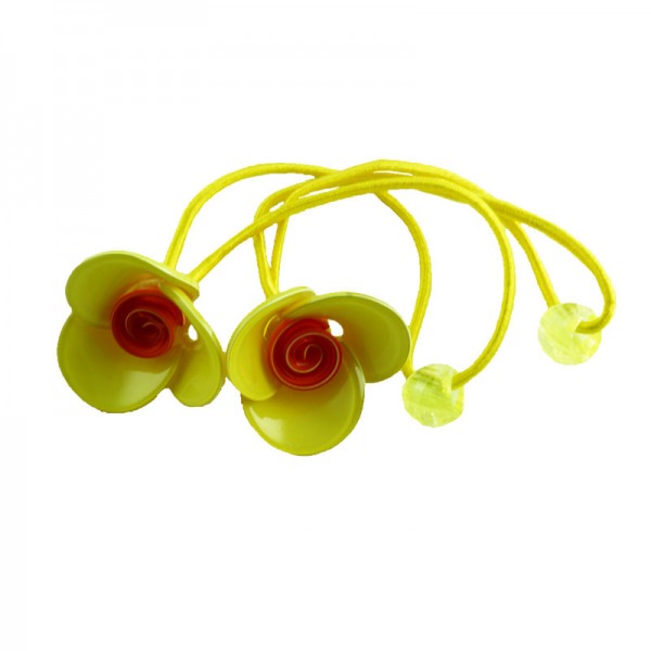 Blomformade hårsnoddar med tre kronblad och stor pistill. Angivet pris är per par i samma färg. Kronbladen finns i följande färger: