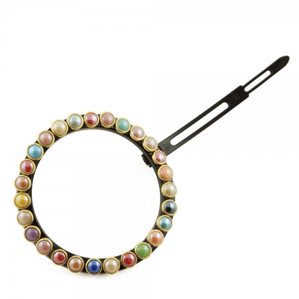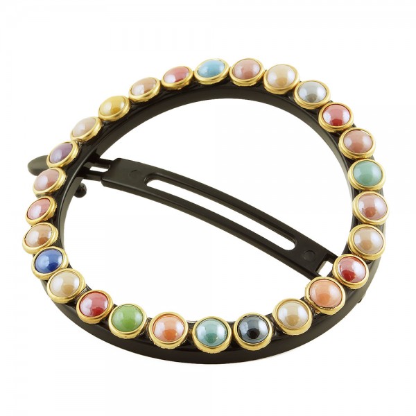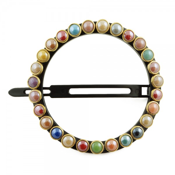 Cirkelformat och färgglatt hårspänne med karaktär. Pärlorna är av plast och gör sig fina till vilken hårfärg som helst. Håraccessoaren passar perfekt för den som behöver lite mer färgklick i vardagen.