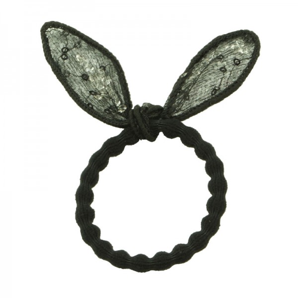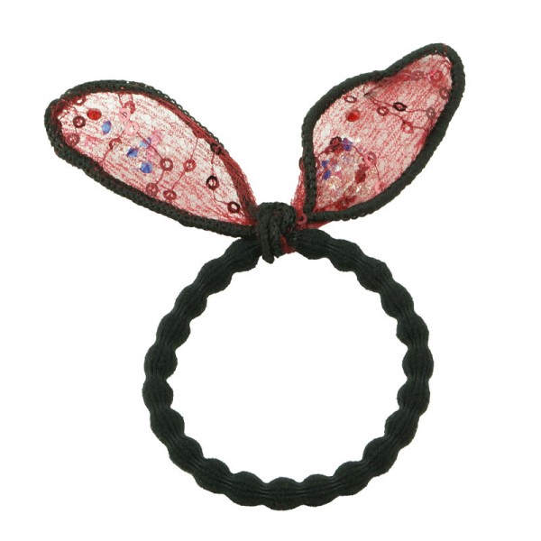 Nylonsnoddar med söta kaninöron med glittriga paljetter och kristaller. Öronen är justerbara då man sytt in en ståltråd i ramen. Måtten för öronen är 5 cm x 2,5 cm.