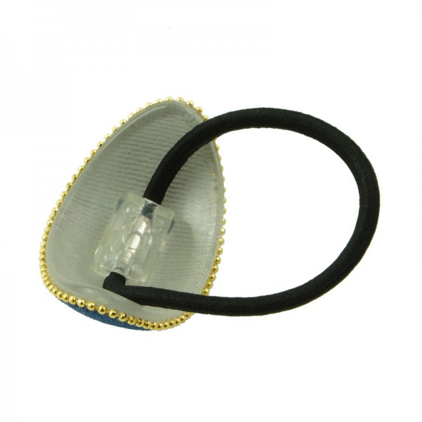 Hårbåge som täcker för knuten på ovansidan av en hästsvans. Kanterna är vackert dekorerade med guldfärgade plastpärlor. Enkel och mycket användbar accessoar. Jeanstyget finns i färgerna: