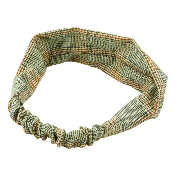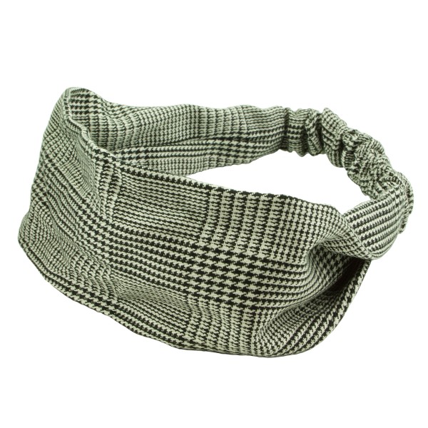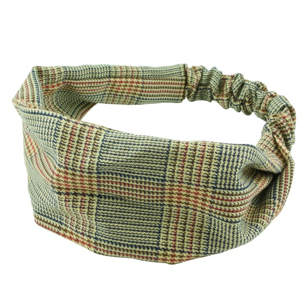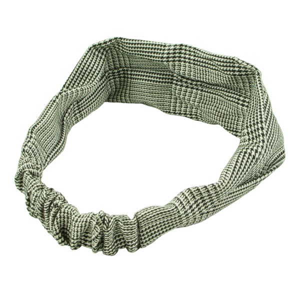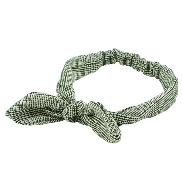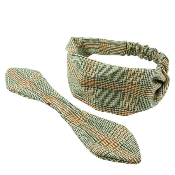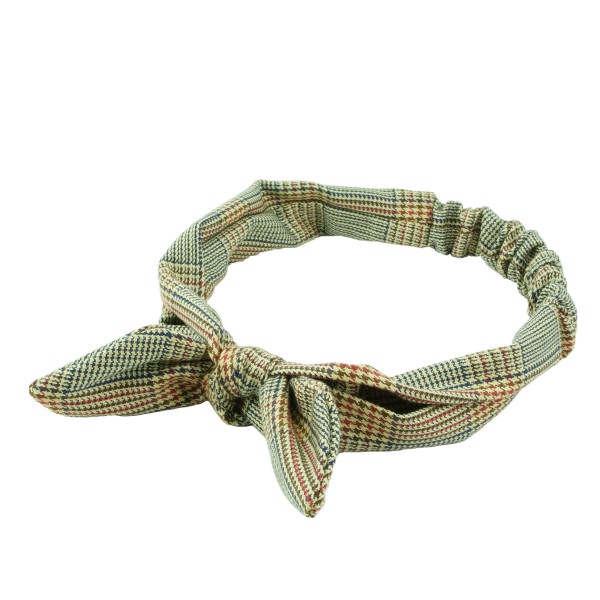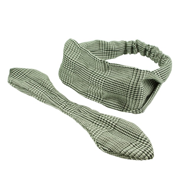 Finmönstrat hårband med hundtand- och fiskbensmönster. Tyget är en blandning av mjuk bomull och polyester, skön och bekväm att bära på huvudet. Resårsband baktill och en avtagbar knut på framsidan. Inuti knuten sitter ståltråd för att man ska forma knuten efter tycke och smak.
