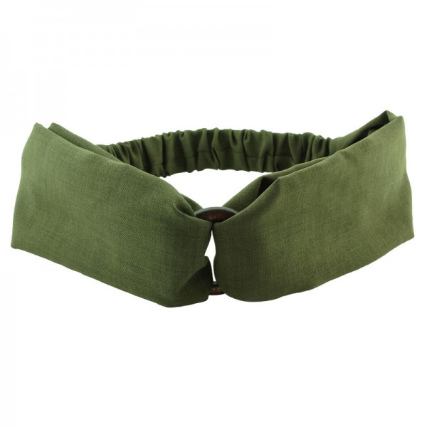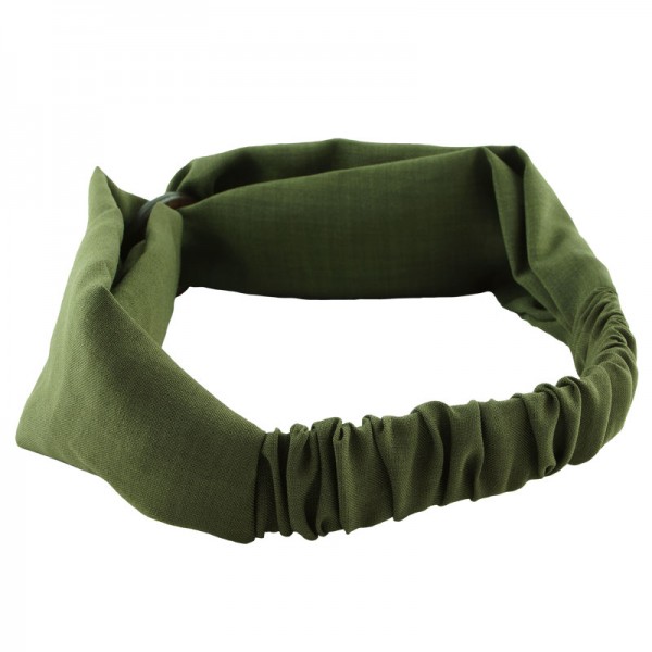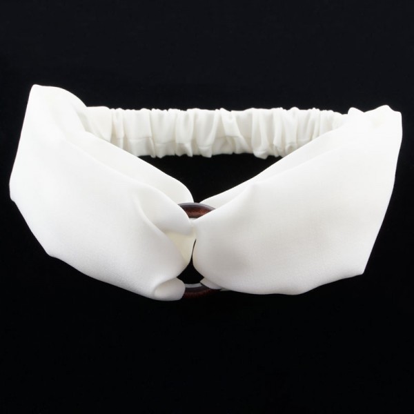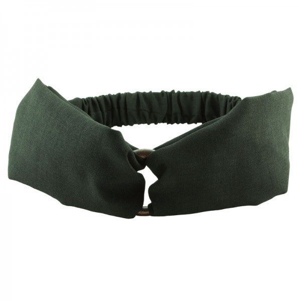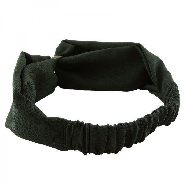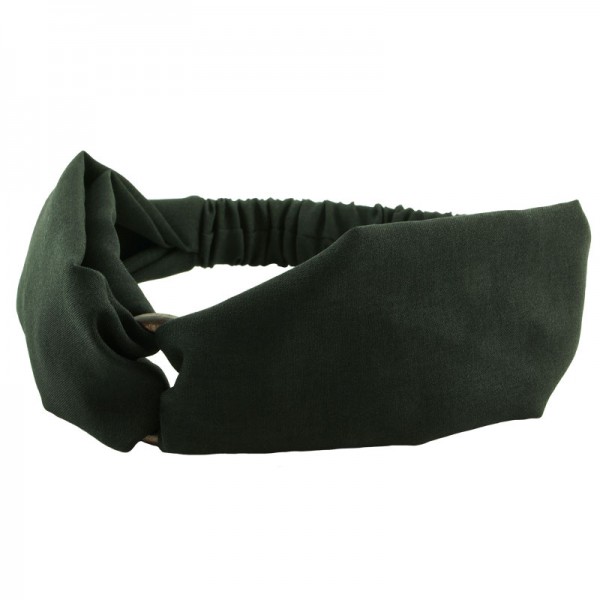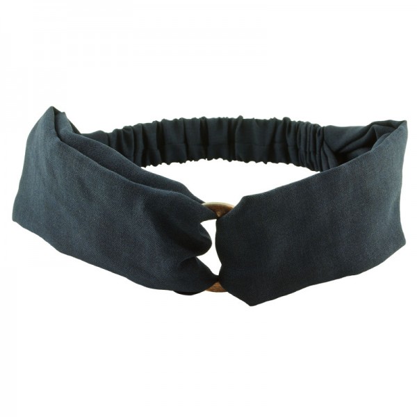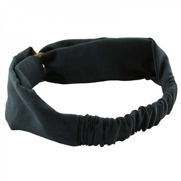 Enfärgat hårband av tunn polyester med en träring framtill i mitten som binder ihop tyget. Bekväm passform med resårband baktill. Tyget mäter 6,5 cm i bredd och har en mjuk och skön känsla.