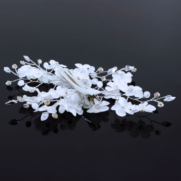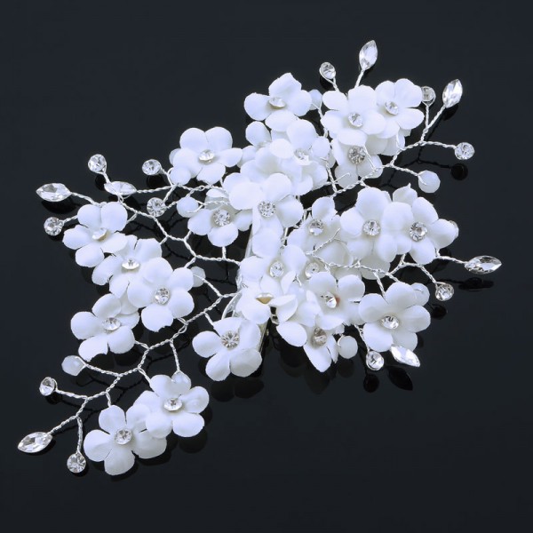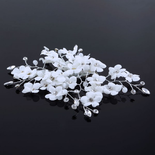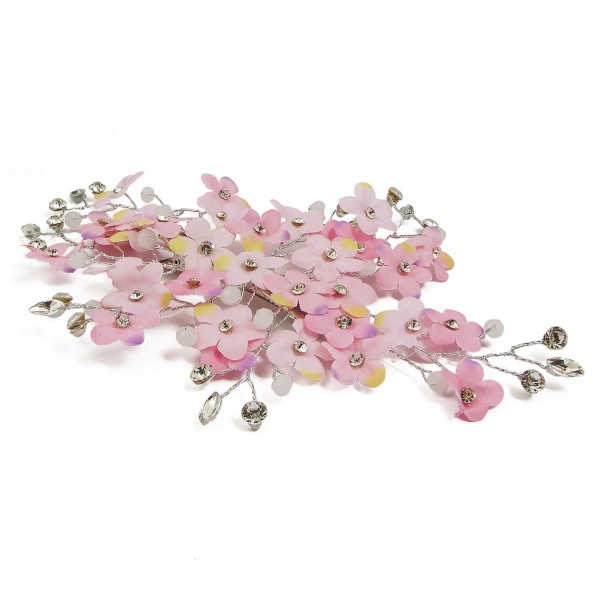 Exklusiv och smakfull håraccessoar med vackra körsbärsblommor. Blommornas blad är gjorda av polyestertyg och har en liten strass i mitten. Även grenarna är dekorerade med strass längst ut. Alla metalldelar inkl. hårklämman baktill är nickelsäkra.