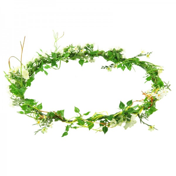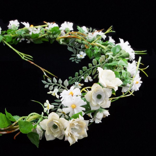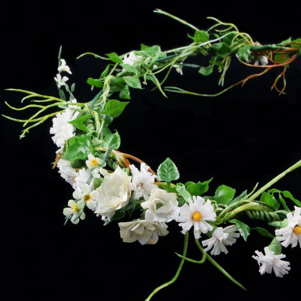 Konstgjord blomsterkrans med små prästkragar - Skånes landskapsblomma. Vacker och välgjord accessoar med fina utsmyckningar som kommer att hålla i många år framöver. Vuxenstorlek.