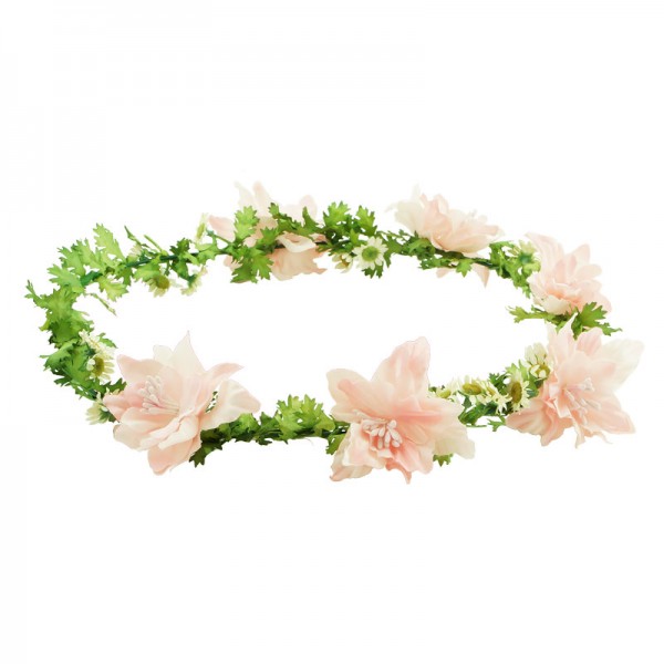 Vackert bunden blomsterkrans med stora liljor inbäddade i ett myller av knastriga löv. Liljorna mäter 5 cm i diameter och kransen har en omkrets på ca 55 cm.