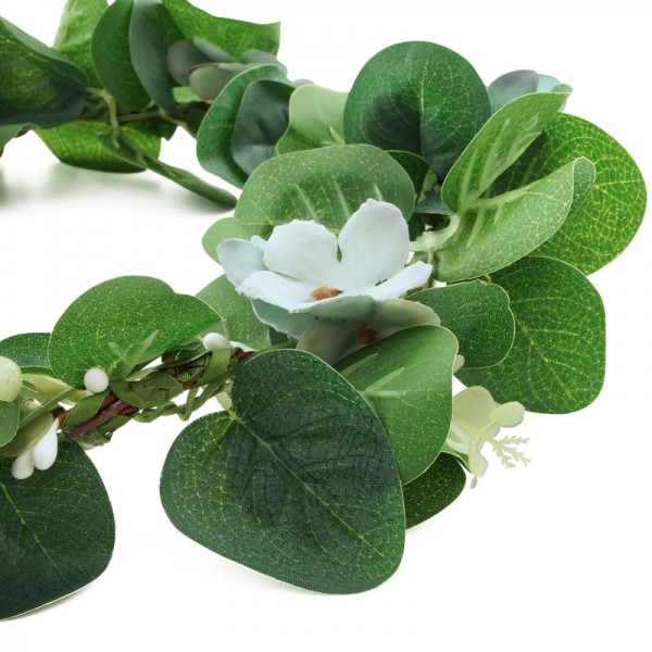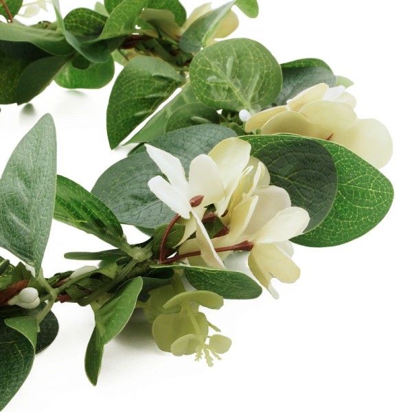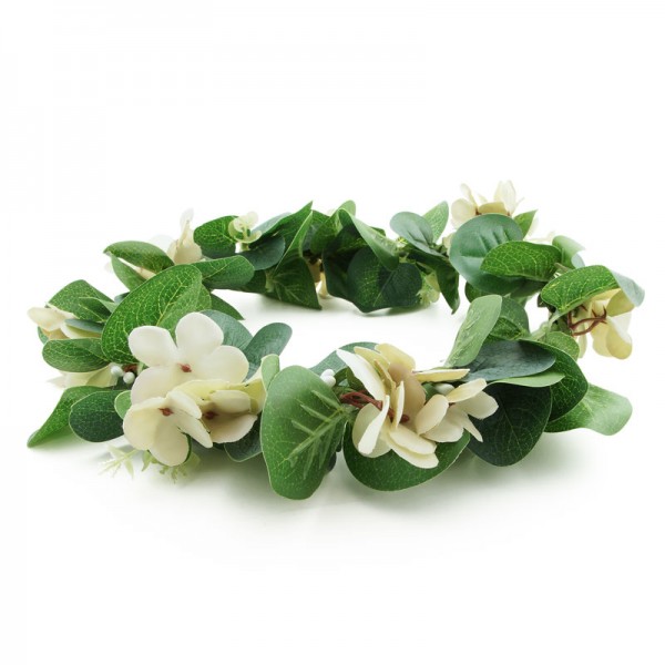 Glättig hårkrans bestående av perenner och gröna blad. Perfekt för den som letar efter en fylligare blomsterkrans med lite mera höjd. Höjden mäter ca 5 - 8 cm och omkretsen på insidan mäter 54 cm.