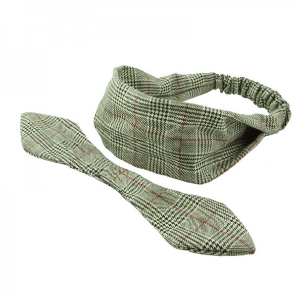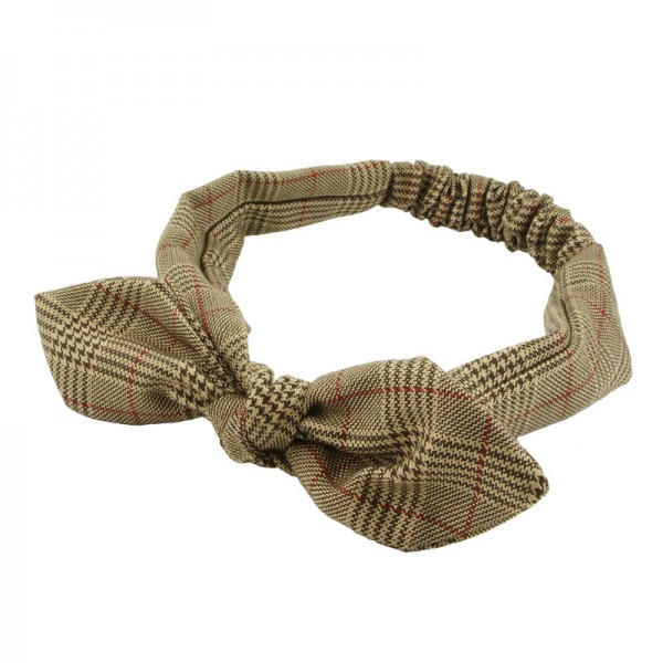 Välsittande hårband med hundtand- och rutmönster. Knuten som sitter på mäter 8 cm i bredd och har en ståltråd inuti som är avtagbar som så önskas. Fint hårband med snyggt mönster som passar till det mesta.