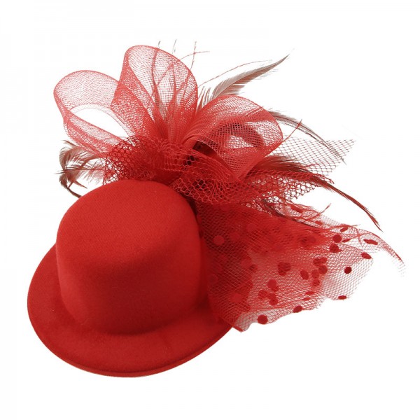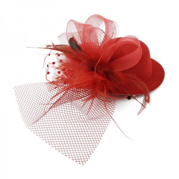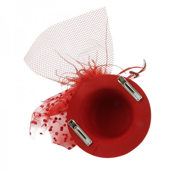Vacker utsmyckad hatt i sammet med kvalitet i varje detalj. På undersidan sitter två klämmor för extra stabilitet. Hatten mäter 13,5 cm i diameter och 5,5 cm i höjd. Nätet bak är 11,5 cm långt.