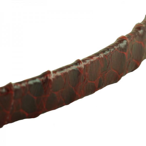 6 mm brett ståldiadem med mönstrat konstskinn (polyuretan) runtom. Fin och välgjord accessoar med bra tyngd som passar alla tillfällen.