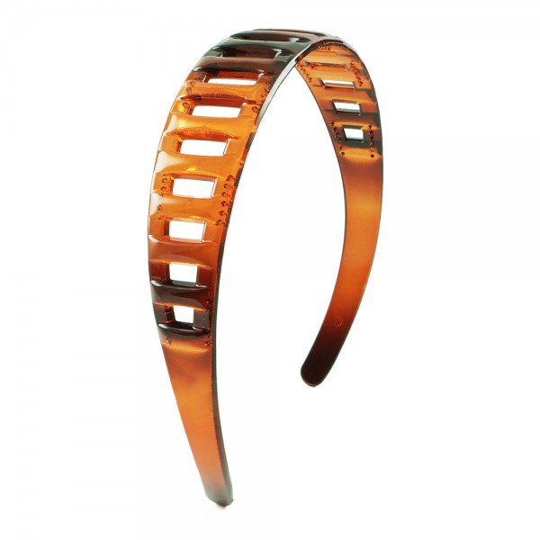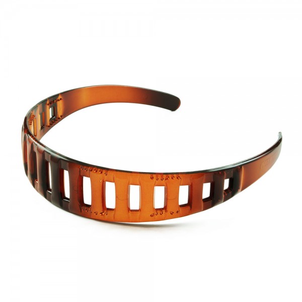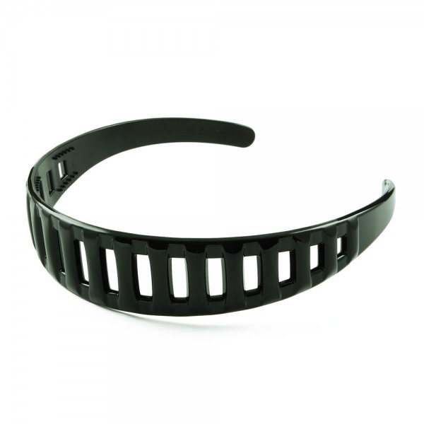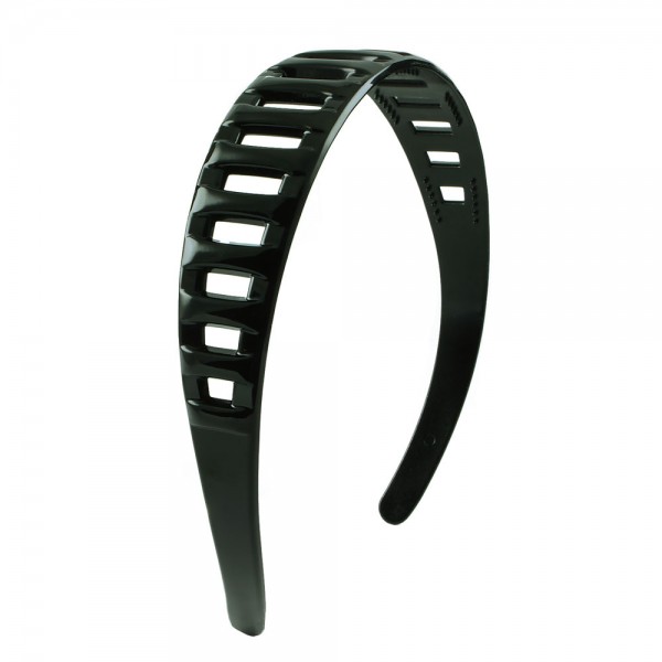Robust plastdiadem med spjälor på ovansidan och små piggar på undersidan för att hålla den bättre på plats i håret. Enkel och tilltalande design som passar till det mesta.