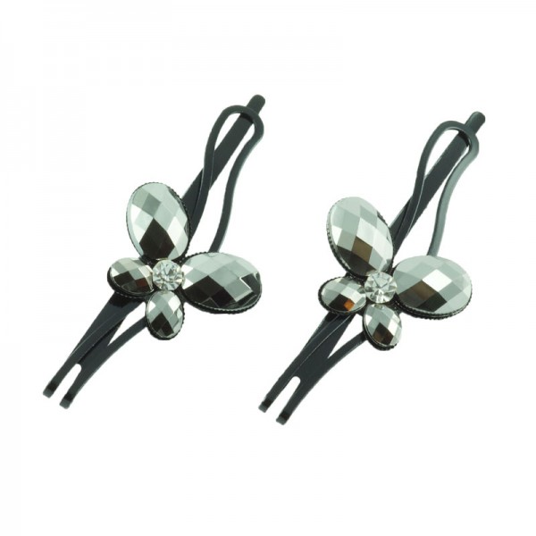 Snygg designad hårnål med stor fjäril av glasstenar. Angivet pris är per par av samma färg, denna produkt säljs inte styckvis. Fjärilen finns i färgerna: