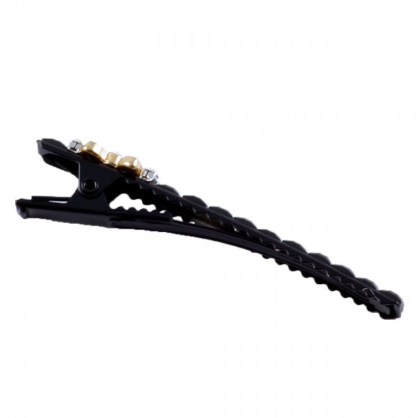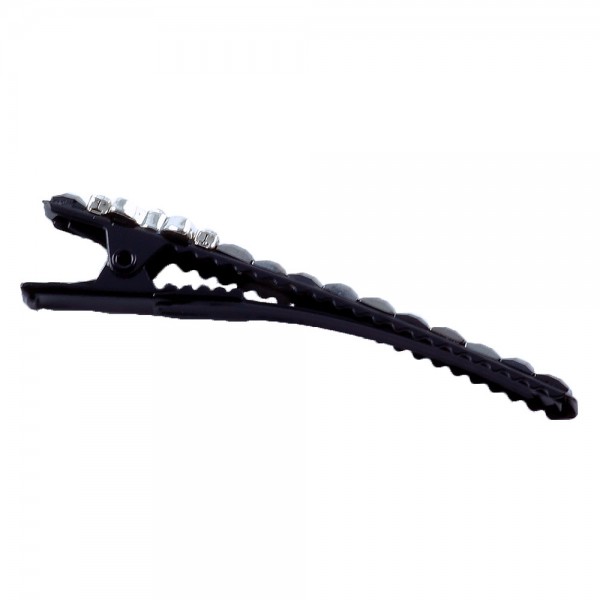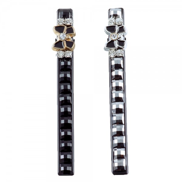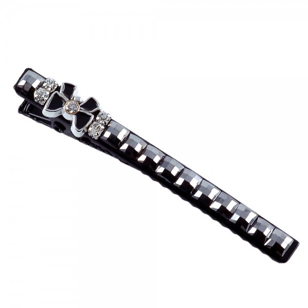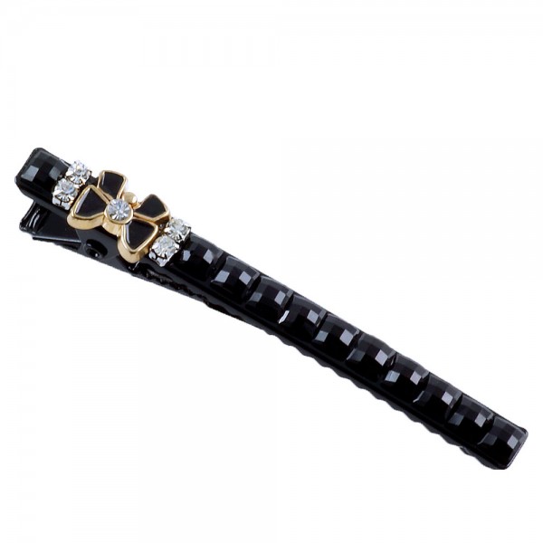 Liten svartfärgad metallklämma i robust design med fjäril och akryl cubic på ovansida. Praktisk accessoar som sitter snyggt i håret.