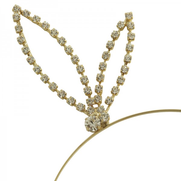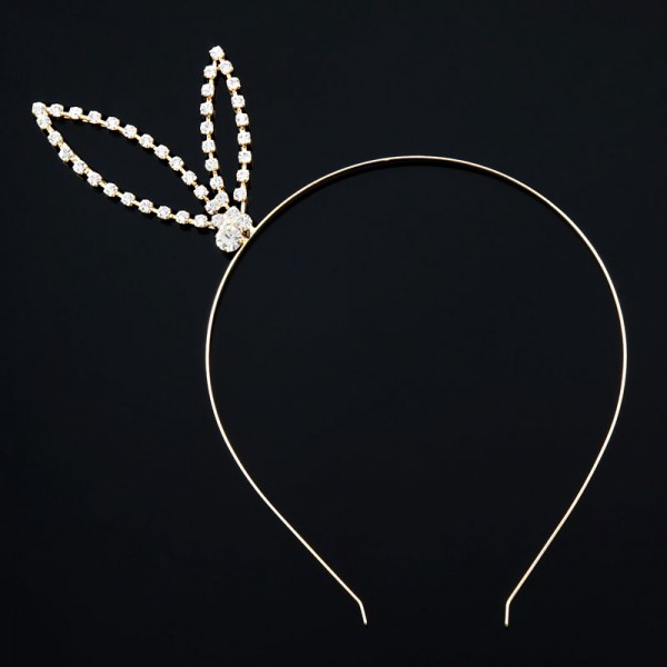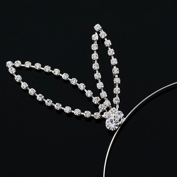 Metalldiadem med kaninöron som mäter 8 cm i höjd. Vackert utsmyckat med vita strasstenar. Robust och tålig stålram av mycket hög kvalitet. Diademet finns i färgerna: