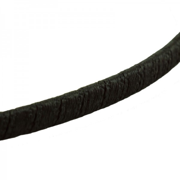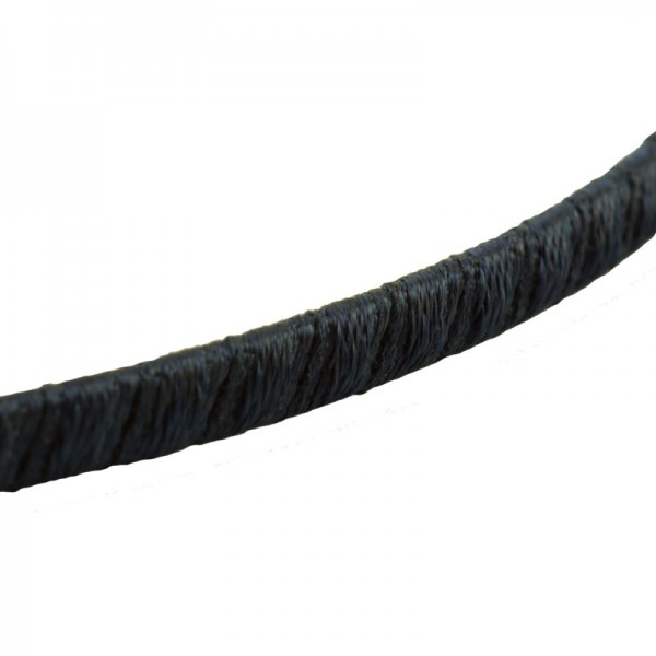 Smalt 4 mm brett ståldiadem inlindat i ett slitstarkt polyestertyg. Lagom tyngd som gör att den inte känns för tung på huvudet samtidigt som den känns dyr och gedigen.