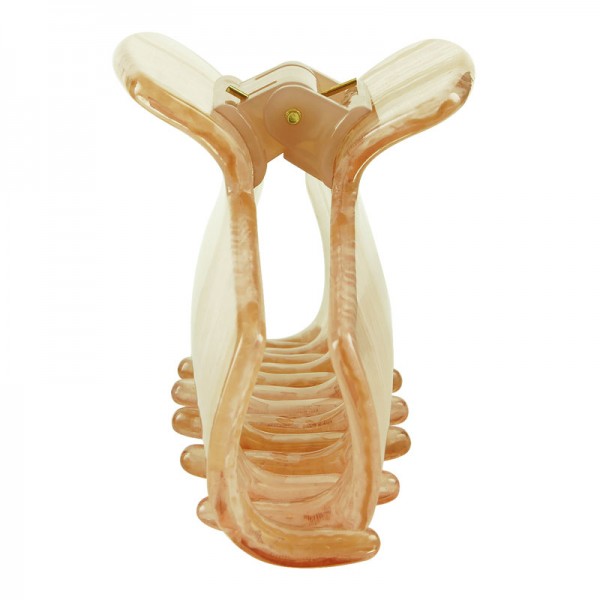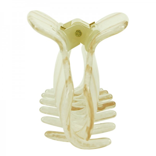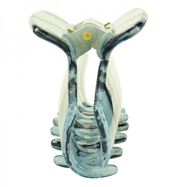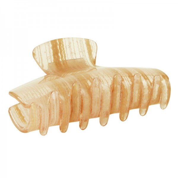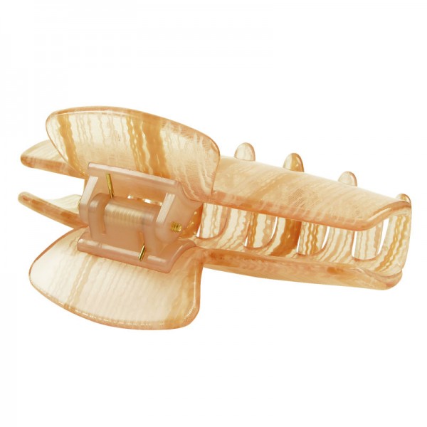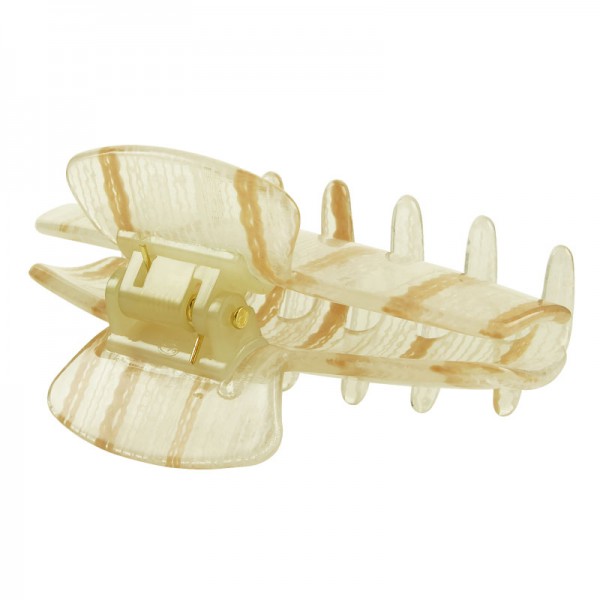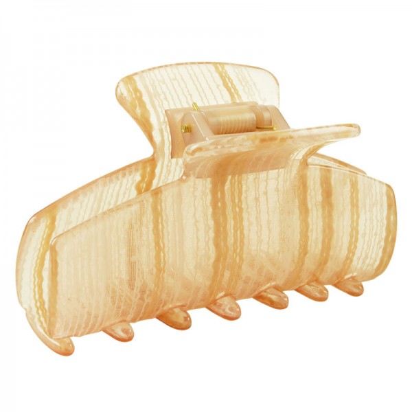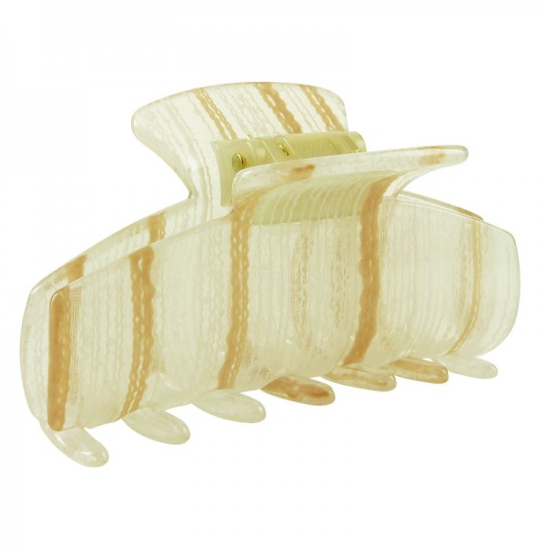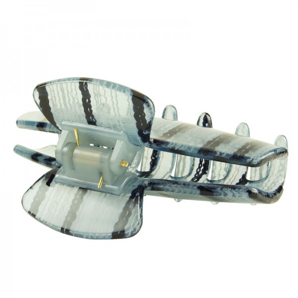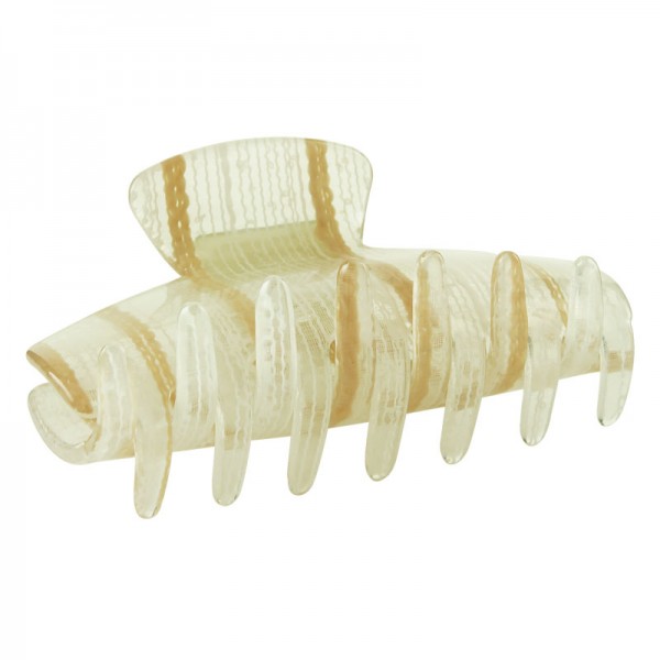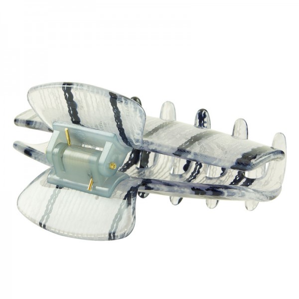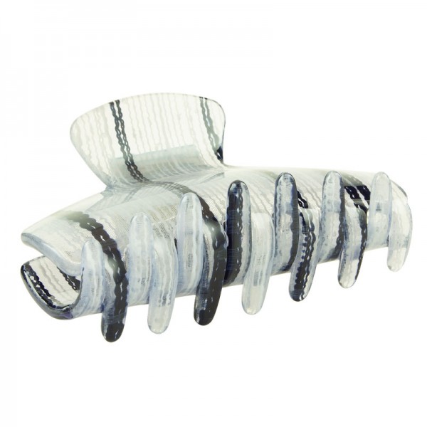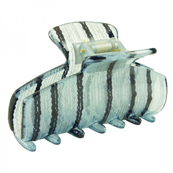 Stor hårklämma av högklassig akryl med ovanlig mönsterkonstruktion - textil liknande mönster som syns igenom den genomskinliga plasten. Kraftig och stabil klämma av bra kvalitet som gjord för att hålla länge. En perfekt accessoar för dig som söker något annat annorlunda.